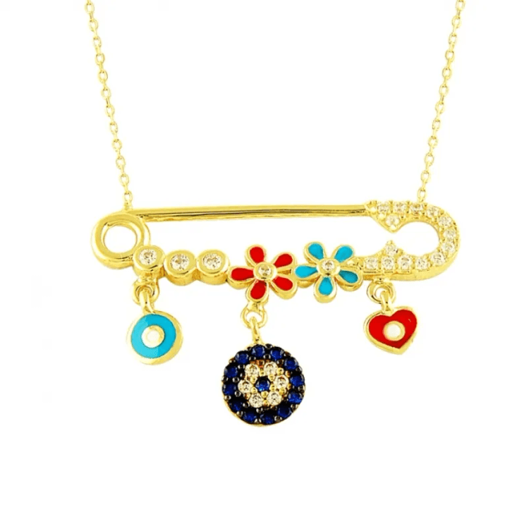 Altın Kolye Modelleri modellerinden Mineli Çengelli İğne Kolye ürünümüz,