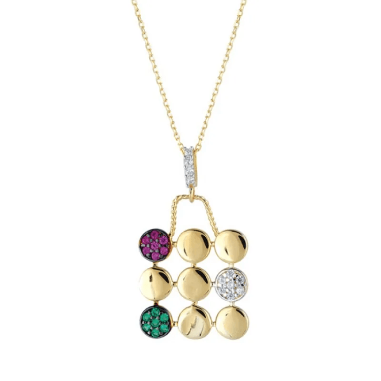 Altın Kolye Modelleri modellerinden Mor Yeşil Beyaz Taşlı Altın Kolye ürünümüz,