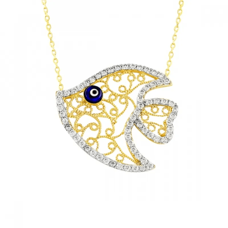 Altın Kolye Modelleri modellerinden Motifli Balık Altın Kolye ürünümüz,