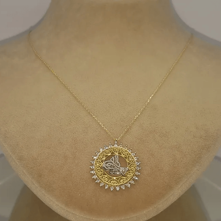 Altın Kolye Modelleri modellerinden Motifli Osmanlı Tuğrası Kolye ürünümüz,