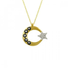 Altın Kolye Modelleri modellerinden Nazar Boncuklu Ay Yıldız Altın Kolye ürünümüz,