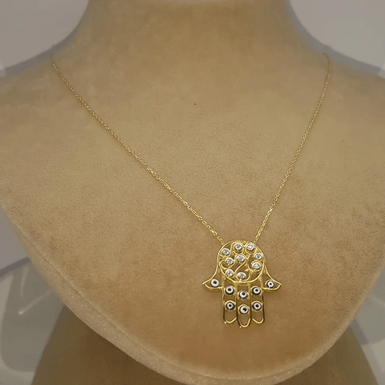 Altın Kolye Modelleri modellerinden Nazar Boncuklu Fatma AnaeliAltın Kolye ürünümüz,