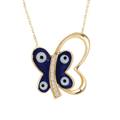 Altın Kolye Modelleri modellerinden Nazar Boncuklu Kelebek Altın Kolye ürünümüz,