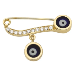 Altın Çocuk Takıları modellerinden Nazar Boncuklu Taşlı Çengelli İğne ürünümüz,