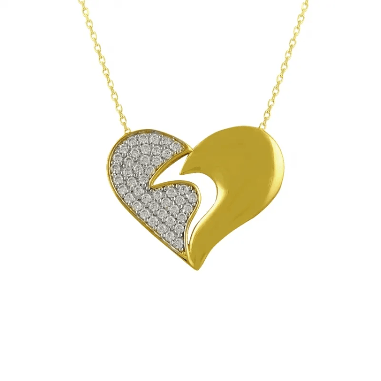 Altın Kolye Modelleri modellerinden Ortadan Ayrılmış Kalp Altın Kolye ürünümüz,