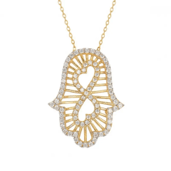 Altın Kolye Modelleri modellerinden Ortasında İki Kalp Fatma Anaeli Kolye ürünümüz,