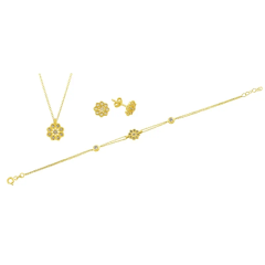 Taşlı Üçlü Set Takım Modelleri modellerinden Papatya Altın Üçlü Takım ürünümüz,