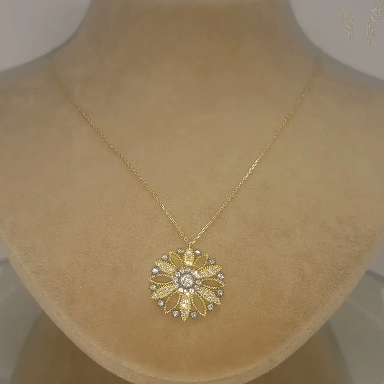 Altın Kolye Modelleri modellerinden Papatya Motifli Taşlı Altın Kolye ürünümüz,
