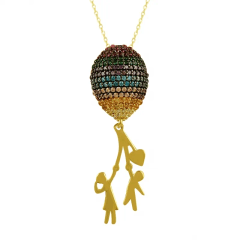 Altın Kolye Modelleri modellerinden Renkli Balondan Tutan Anne Çocuk Altın Kolye ürünümüz,