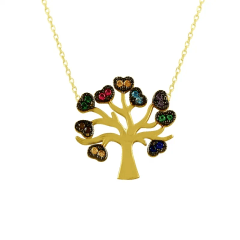 Altın Kolye Modelleri modellerinden Renkli Kalpten Oluşan Ağaç Altın Kolye ürünümüz,