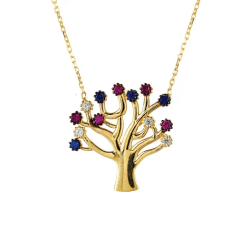 Altın Kolye Modelleri modellerinden Renkli Taşlı Ağaç Kolye ürünümüz,