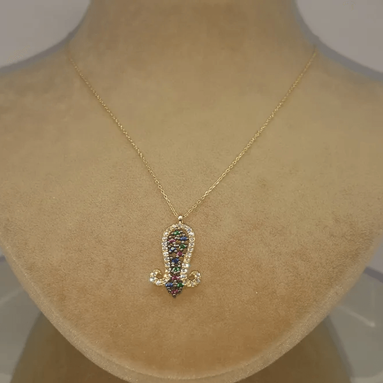 Altın Kolye Modelleri modellerinden Renkli Taşlı Altın Lale Kolye ürünümüz,