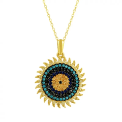 Altın Kolye Modelleri modellerinden Renkli Taşlı Güneş Altın Kolye KLF1290 ürünümüz,
