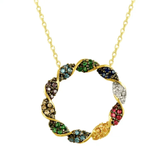 Altın Kolye Modelleri modellerinden Renkli Taşlı Halka Altın Kolye KLF1248 ürünümüz,