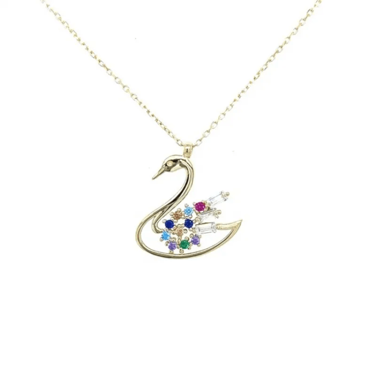 Altın Kolye Modelleri modellerinden Renkli Taşlı Kuğu Kolye ürünümüz,