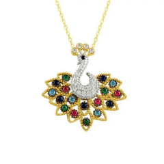 Altın Kolye Modelleri modellerinden Renkli Taşlı Tavus Kuşu Altın Kolye ürünümüz,