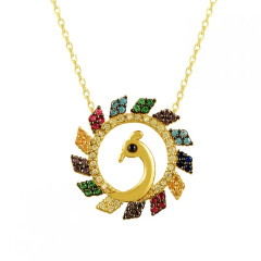 Altın Kolye Modelleri modellerinden Renkli Taşlı Tavus Kuşu Altın Kolye KLF1249 ürünümüz,