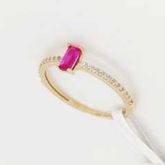 Altın Yüzükler modellerinden Renkli Taşlı Yüzük Baget Pembe Taş ürünümüz,