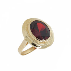 Altın Yüzükler modellerinden Renkli Taşlı Yüzük Hasır Desen Bordo Taş ürünümüz, 3.52 gr ağırlığında 14 Ayar Altın.