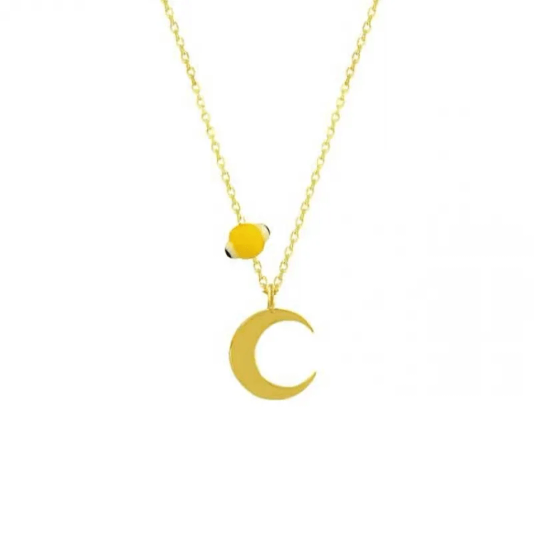 Altın Kolye Modelleri modellerinden Sarı Nazar Boncuklu Ay Altın Kolye ürünümüz,