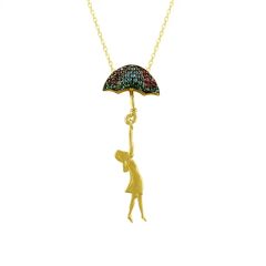 Altın Kolye Modelleri modellerinden Şemsiyeli Kız Altın Kolye ürünümüz,