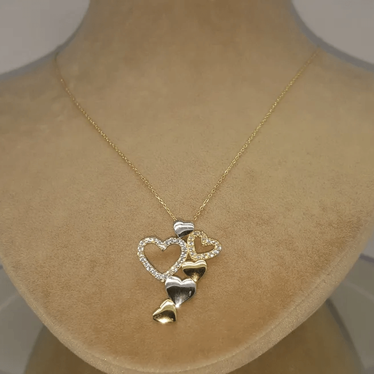Altın Kolye Modelleri modellerinden Sıra Sıra Kalpler Altın Kolye ürünümüz,
