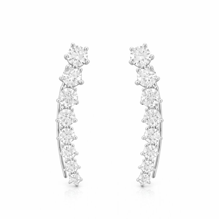 Altın Küpe Modelleri ve Fiyatları modellerinden Sıra Taşlı Beyaz Altın Küpe EDT163 ürünümüz, 2.98 gr ağırlığında 14 Ayar Altın.