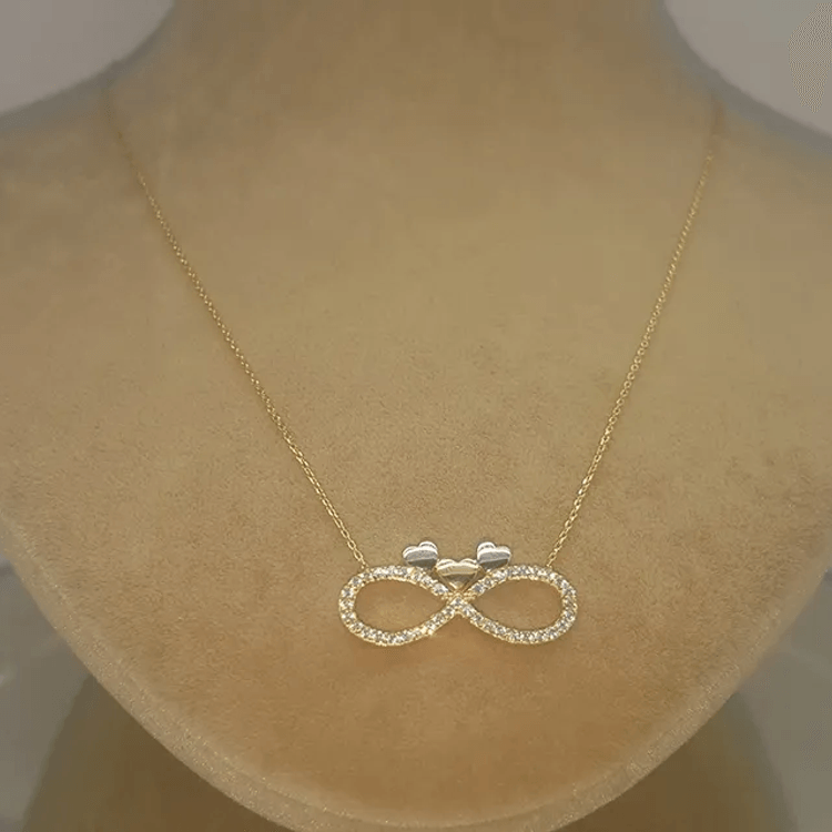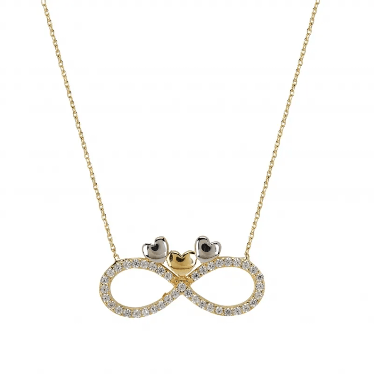 Altın Kolye Modelleri modellerinden Sonsuzluk Üzerinde Kalpler Kolye ürünümüz,