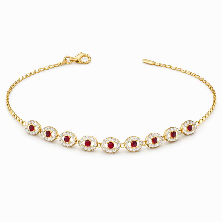 Altın Bileklik Modelleri modellerinden Su Yolu Altın Bileklik Kırmızı Taşlı ürünümüz,
