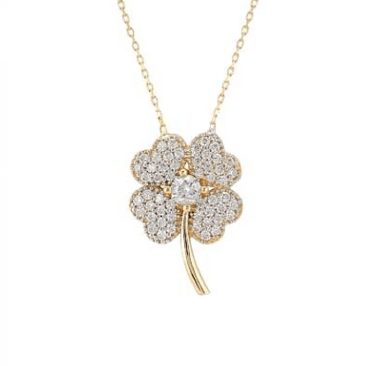 Altın Kolye Modelleri modellerinden Taşlı Altın Yonca Kolye ürünümüz,