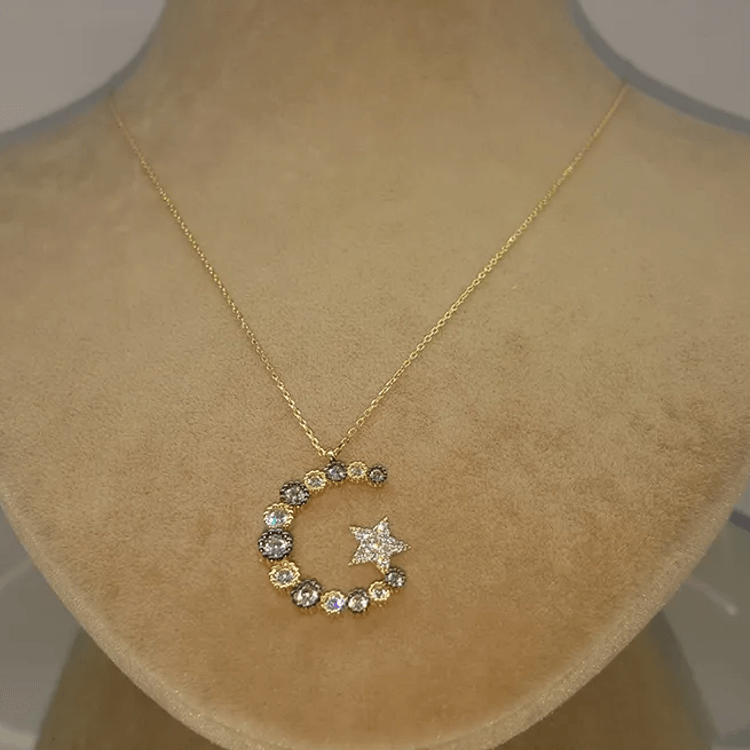 Altın Kolye Modelleri modellerinden Taşlı Ay yıldız Altın Kolye ürünümüz,