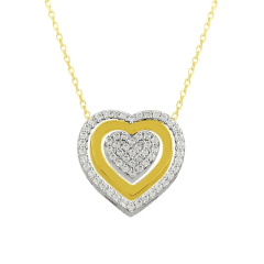 Altın Kolye Modelleri modellerinden Taşlı İçiçe Kalpler Altın Kolye KLF1333 ürünümüz,