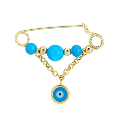 Altın Çocuk Takıları modellerinden Turkuaz Göz Sallantılı Çengelli İğne ürünümüz,