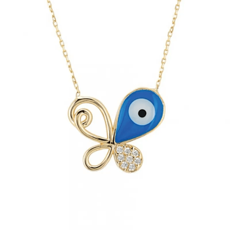 Altın Kolye Modelleri modellerinden Turkuaz Mineli Kelebek Kolye ürünümüz,