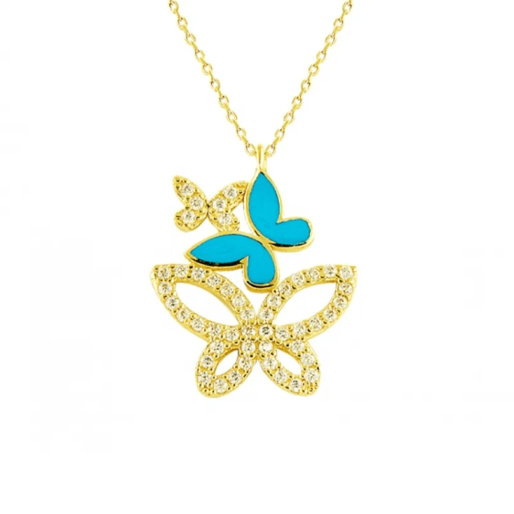 Altın Kolye Modelleri modellerinden Turkuazlı KelebekAltın Kolye ürünümüz,