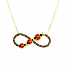 Altın Kolye Modelleri modellerinden Uğur Böcekli Kahverengi Sonsuzluk Altın Kolye ürünümüz,