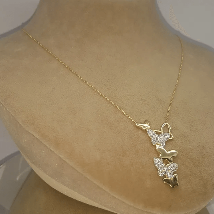 Altın Kolye Modelleri modellerinden Üst Üste Kelebekler Altın Kolye ürünümüz,