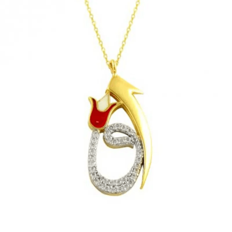Altın Kolye Modelleri modellerinden Vav Elif Kırmızı Lale Altın Kolye ürünümüz,