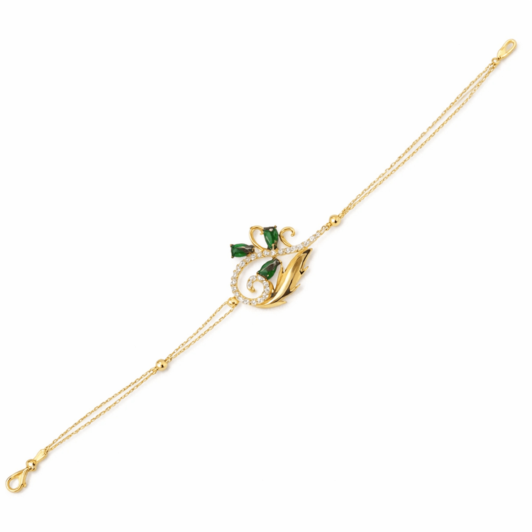 Altın Bileklik Modelleri modellerinden Yaprak Motifli Yeşil Taşlı Bileklik ürünümüz,