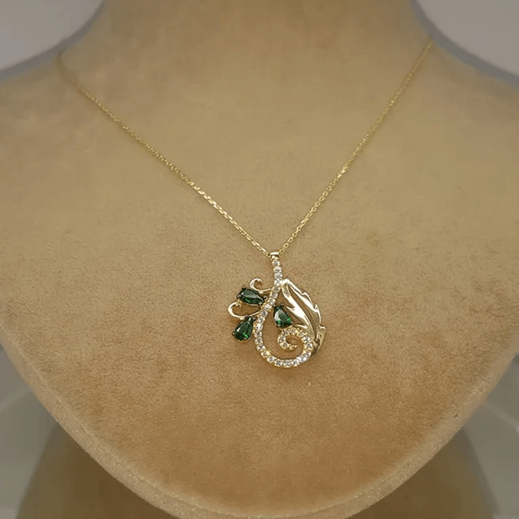 Altın Kolye Modelleri modellerinden Yaprak Motifli Yeşil Taşlı Kolye ürünümüz,