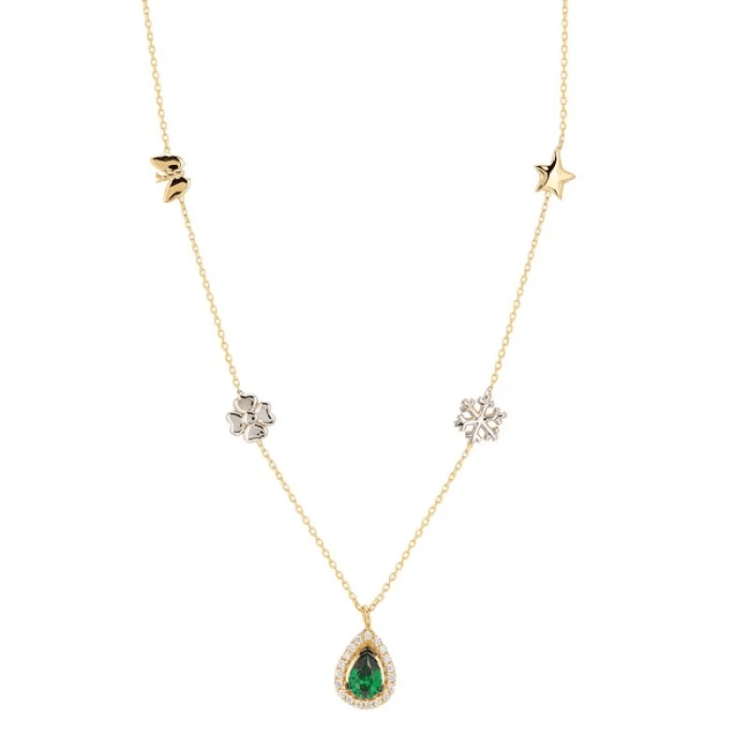 Altın Kolye Modelleri modellerinden Yeşil Damla Şans Kolyesi ürünümüz,