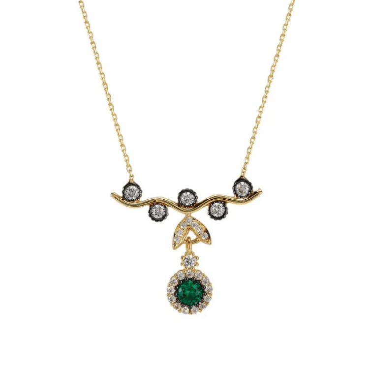 Altın Kolye Modelleri modellerinden Yeşil Taşlı Altın Kolye ürünümüz,