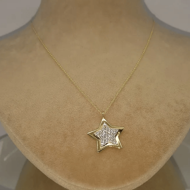 Altın Kolye Modelleri modellerinden Yıldız Çok Taşlı Altın Kolye ürünümüz,