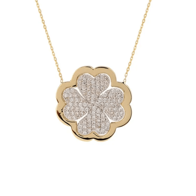 Altın Kolye Modelleri modellerinden Yonca Çok Taşlı Altın Kolye ürünümüz,