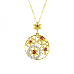 Altın Kolye Modelleri modellerinden Yuvarlak Çiçekli Altın Kolye ürünümüz,