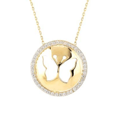 Altın Kolye Modelleri modellerinden Yuvarlak İçinde Kelebek Altın Kolye ürünümüz,