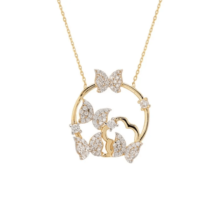 Altın Kolye Modelleri modellerinden Yuvarlak İçinde Kelebekler Altın Kolye ürünümüz,