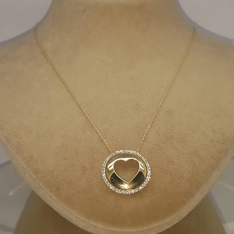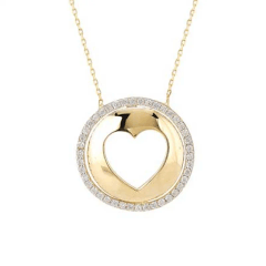 Altın Kolye Modelleri modellerinden Yuvarlak Ortasında Kalp Kolye ürünümüz,