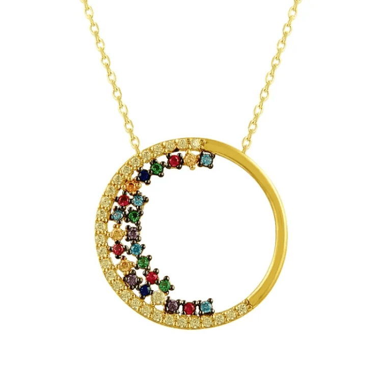 Altın Kolye Modelleri modellerinden Yuvarlak Renkli Taşlı Altın Kolye KLF1247 ürünümüz,