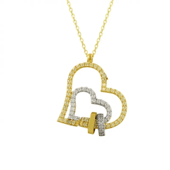 Altın Kolye Modelleri modellerinden Yüzüklerle Tutturulmuş Kalpli Altın Kolye ürünümüz,